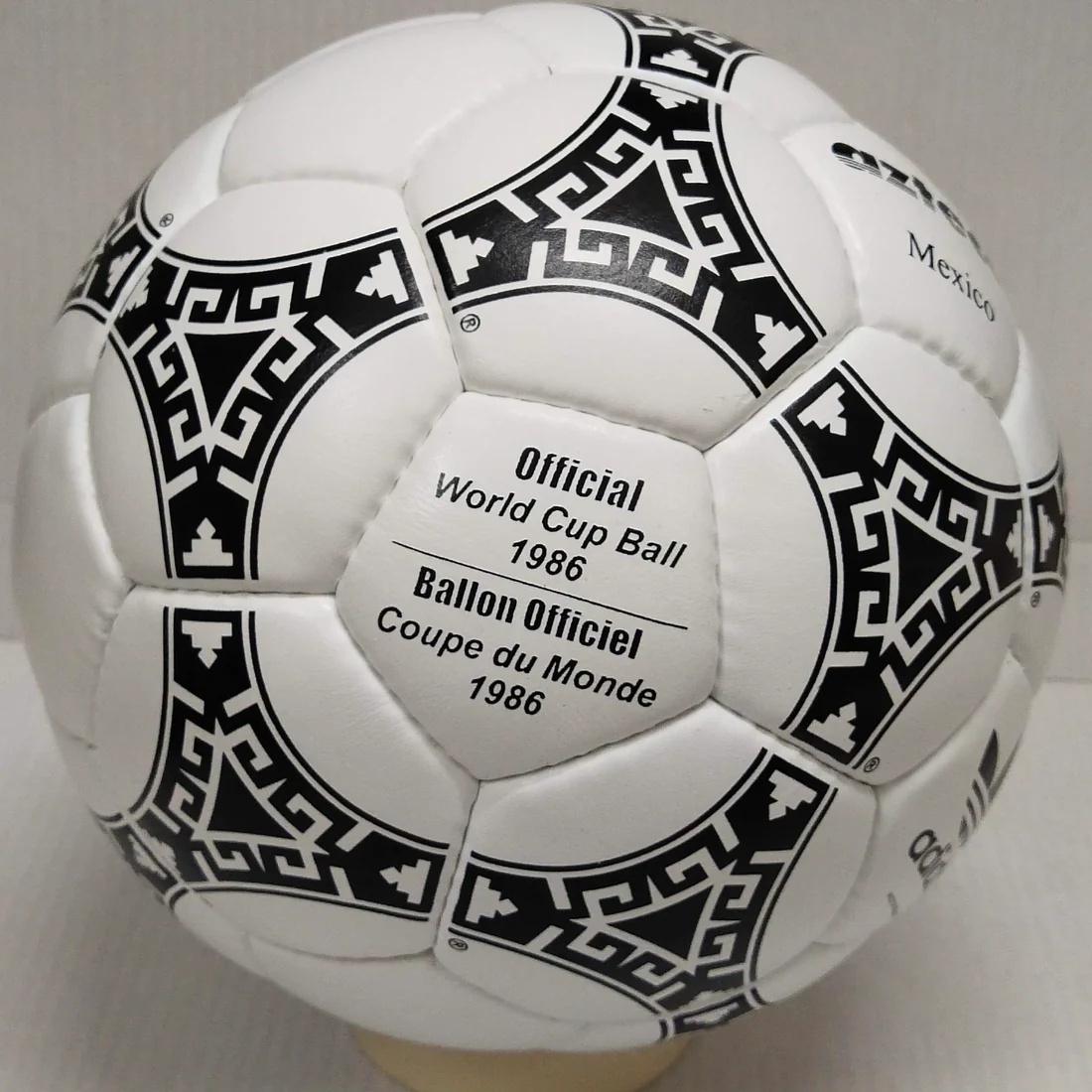 The Adidas Azteca Mexico was the official match ball of the 1986 FIFA World Cup held in Mexico. It was the first fully synthetic FIFA World Cup ball, and it had a design inspired by the native Aztec architecture and murals. The ball was named after the Aztecs, who were a powerful civilization that dominated parts of Mexico from the 14th to the 16th centuries. The ball had 32 panels and a polyurethane coating that improved its water resistance and durability.