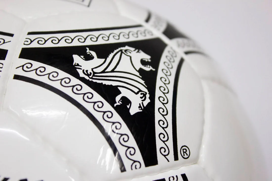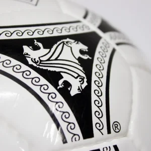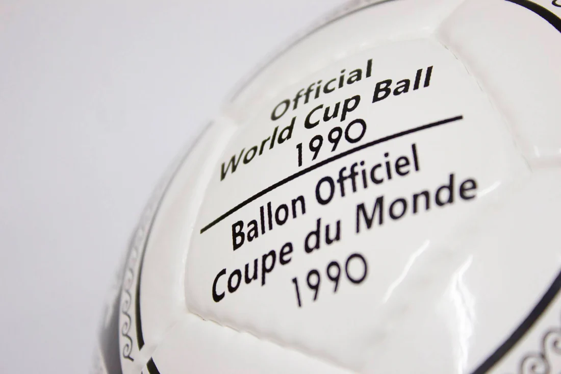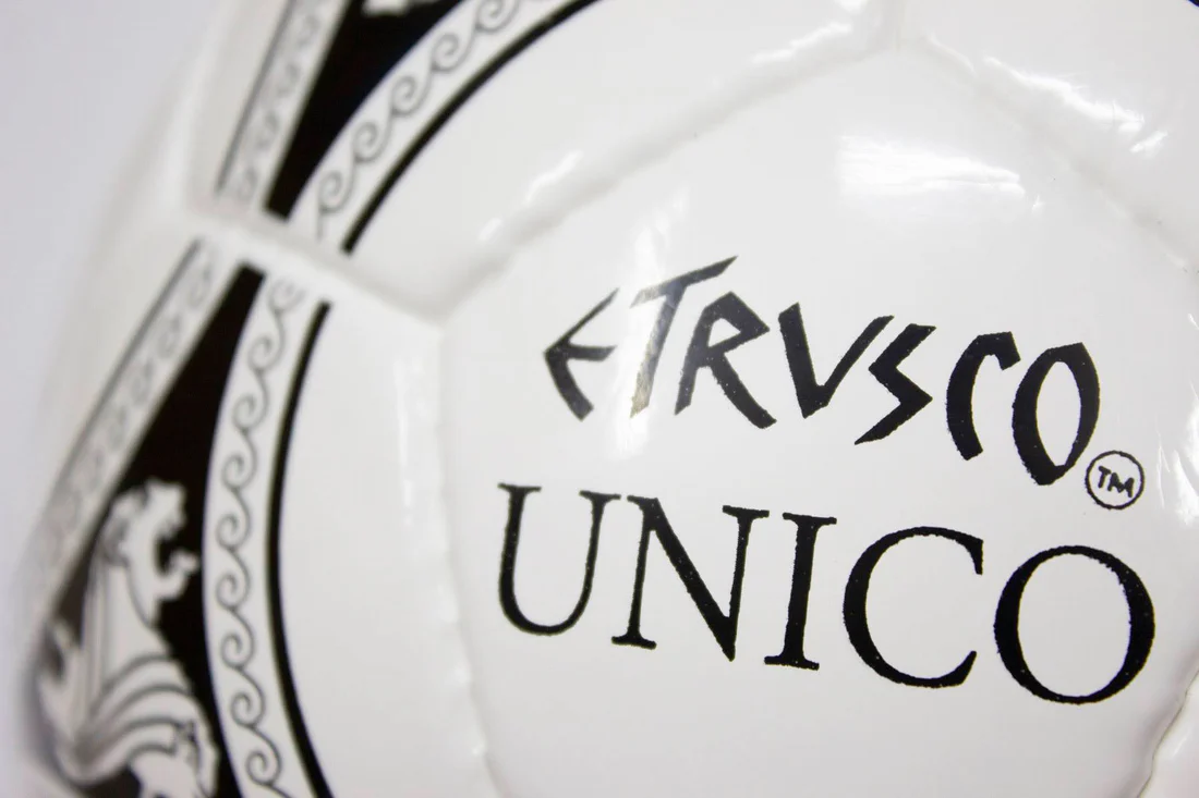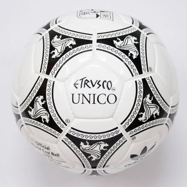 The Adidas Etrusco Unico was the official match ball of the 1990 FIFA World Cup in Italy. It had a design inspired by the ancient Etruscan art and culture of Italy, featuring 20 Tango triads with three lion heads each. It was the first ball with an internal layer of black polyurethane foam, which improved its water resistance and durability
