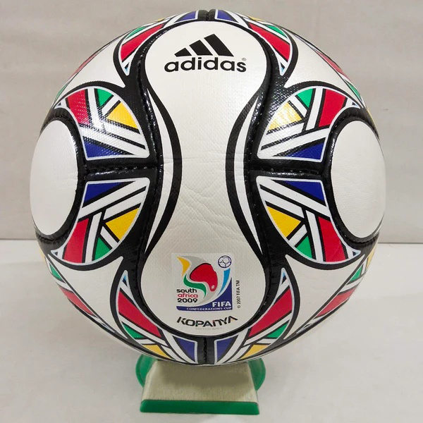The Adidas Kopanya is a soccer ball that was made by adidas for the 2009 Confederations Cup in South Africa. The word kopanya means “join together” in Sesotho, one of the 11 official languages of South Africa. The ball has many colors, such as blue, green, yellow, and red. It has the same structure as the +Teamgeist and Europass balls, which were used in the previous World Cup and European Championship tournaments.