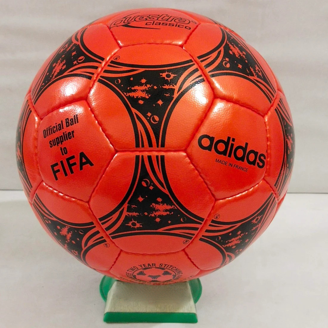 The Adidas Questra was the official match ball of the 1994 FIFA World Cup held in the USA. It was a lighter and more responsive ball that was designed to produce more goals and excitement. The ball had a space-themed design that was inspired by the host nation’s history of space exploration and the quest for the stars. The ball was made from five different materials and had a polyurethane coating that improved its water resistance and durability.