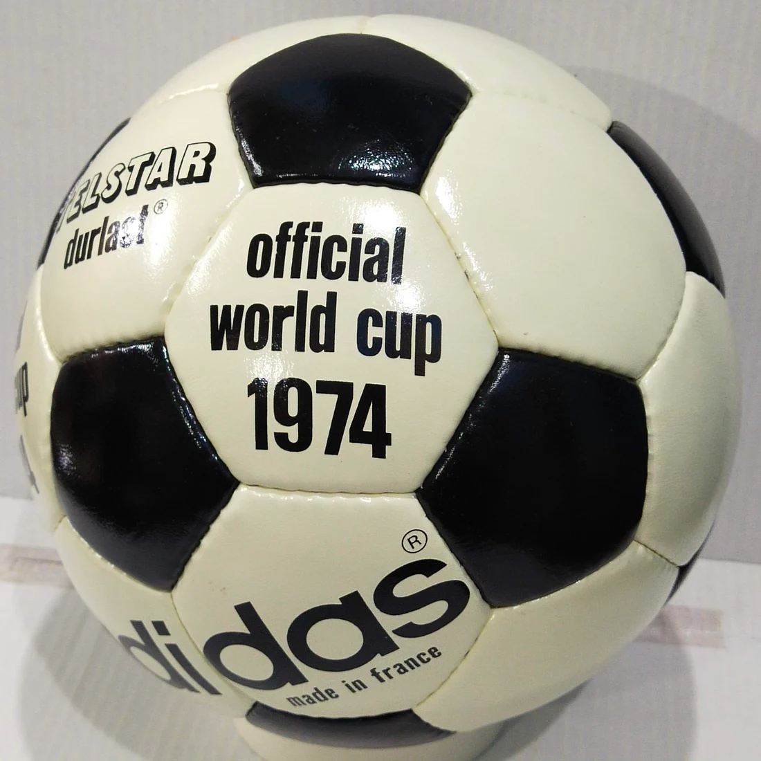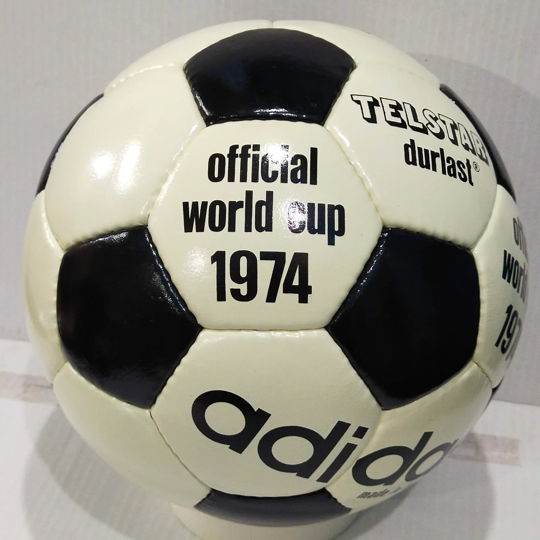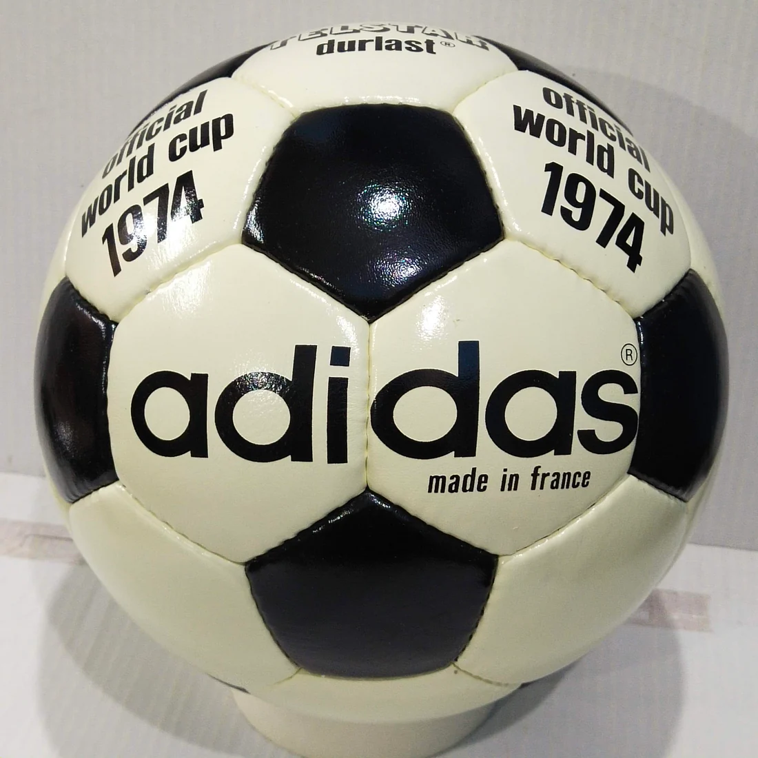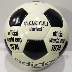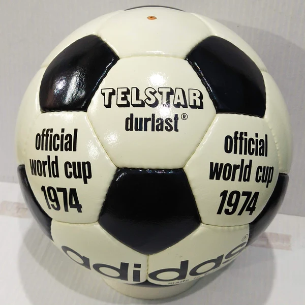 The Adidas Telstar Durlast ball was one of the official match balls of the 1974 FIFA World Cup in Germany. It was a black-and-white ball that was designed for better visibility on black-and-white television broadcasts. The ball was made of leather and coated with a synthetic material called Durlast, which increased its water resistance and durability. The ball was named after the Telstar satellite, which was the first to send live television signals, telephone calls, and fax images through space.