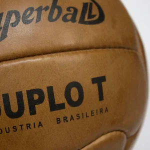 The Duplo T Superball was the official match ball of the 1950 FIFA World Cup in Brazil. It was a revolutionary ball that did not have any laces, unlike the previous models. It was inflated with a pump and needle valve through a small hole in the leather. The ball was made of 12 curved panels of leather and had a company logo and text printed on it. The ball was named after the Super Duplo T, a model that was used in the Argentine championship since the 1930s.