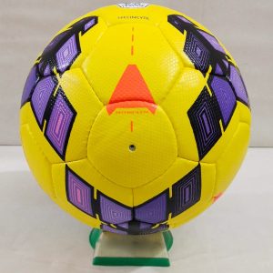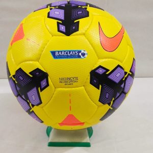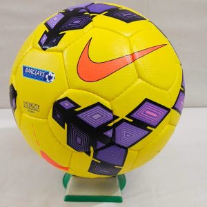 The Nike Incyte Premier League ball was the official match ball for the 2013/14 season. It featured a bold design with purple graphics and a vibrant orange Nike swoosh, incorporating Nike’s RaDaR (Rapid Decision and Response) technology to enhance visibility on the pitch. The ball was praised for its innovation and performance, including a micro-textured casing for accurate flight and a five-layer construction for optimal touch.