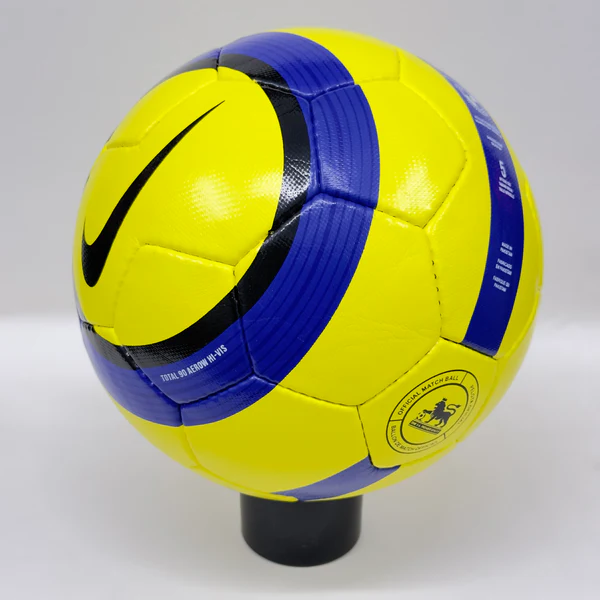 The Nike Total 90 Aerow 1 ball was used in the English Premier League from 2004 to 2006. It is the successor of the Nike Geo Merlin Vapor, which is the first ball to feature the Nike Geo technology. The Nike Total 90 Aerow 1 had a 26-panel design with a textured casing that improved the ball’s aerodynamics, accuracy, and touch. The ball is made of synthetic leather with a shiny waterproof coating. The ball is named after the Total 90, a line of soccer products by Nike that aimed to enhance the performance of strikers.