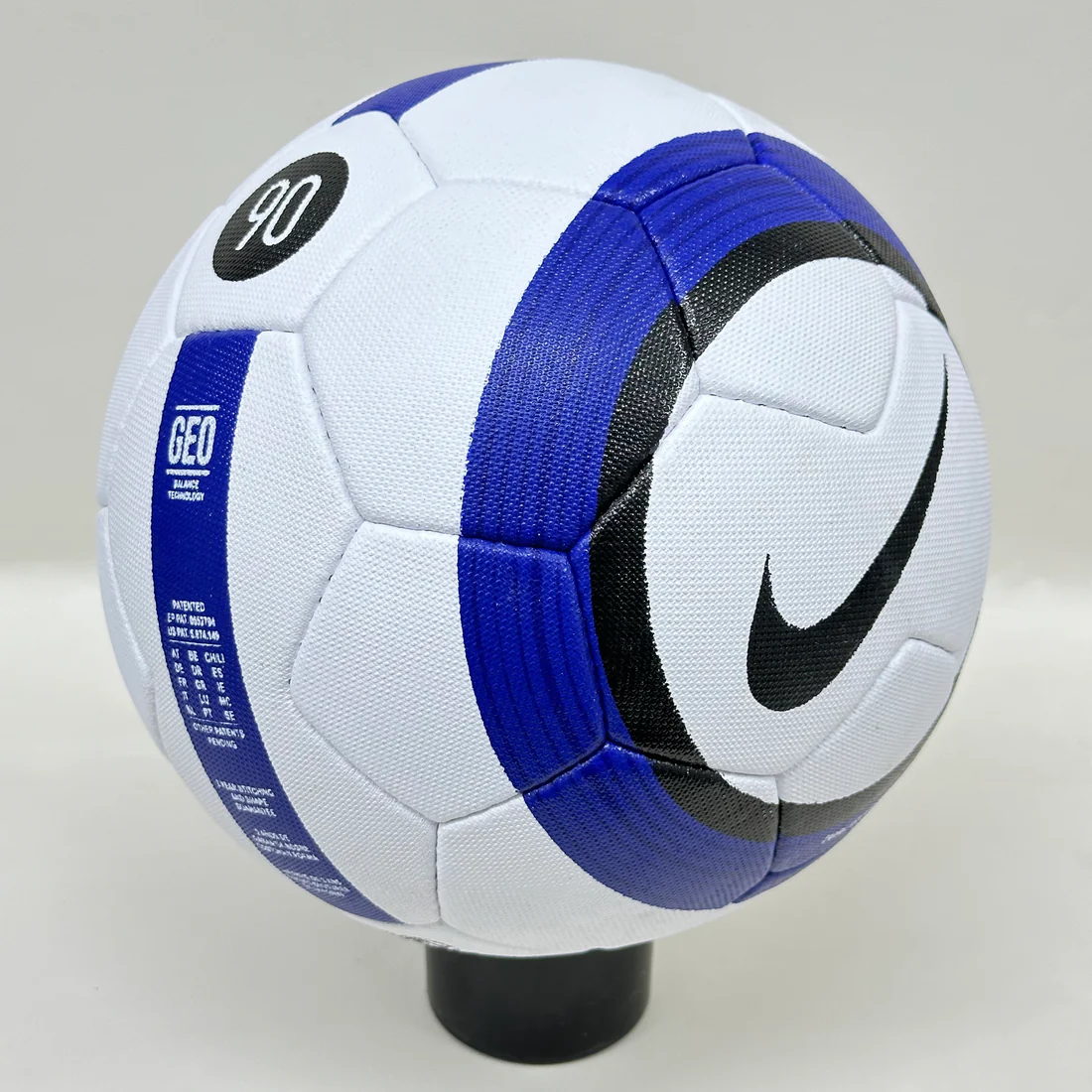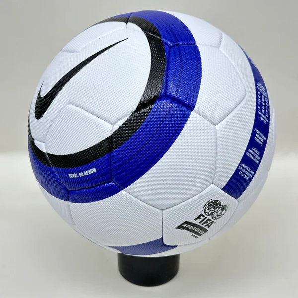 The Nike Total 90 Aerow 1 ball was used in the La Liga from 2004 to 2006. It is the successor of the Nike Geo Merlin Vapor, which is the first ball to feature the Nike Geo technology. The Nike Total 90 Aerow 1 had a 26-panel design with a textured casing that improved the ball’s aerodynamics, accuracy, and touch. The ball is made of synthetic leather with a shiny waterproof coating. The ball is named after the Total 90, a line of soccer products by Nike that aimed to enhance the performance of strikers.