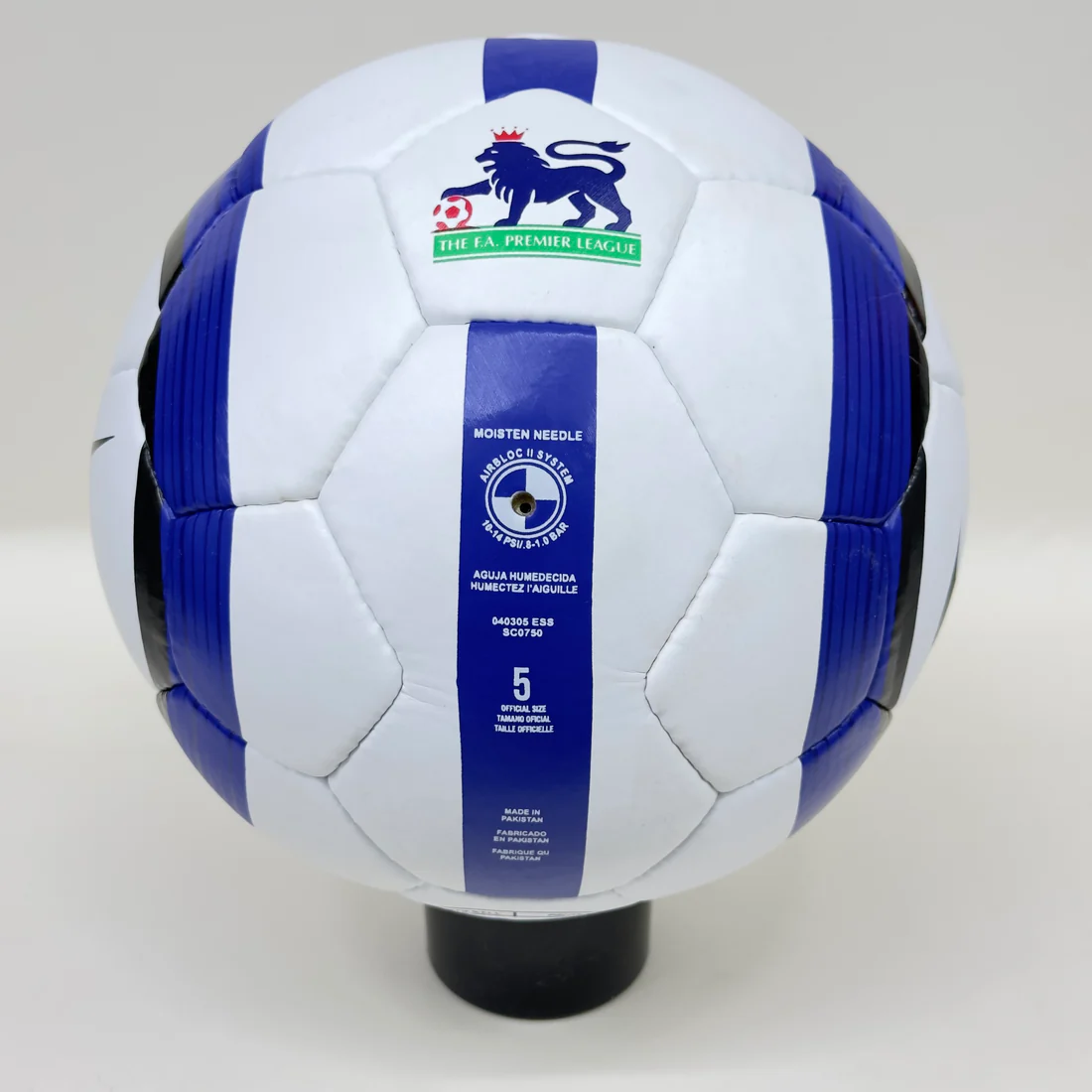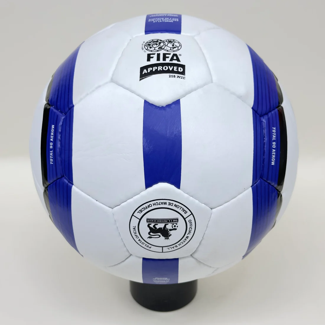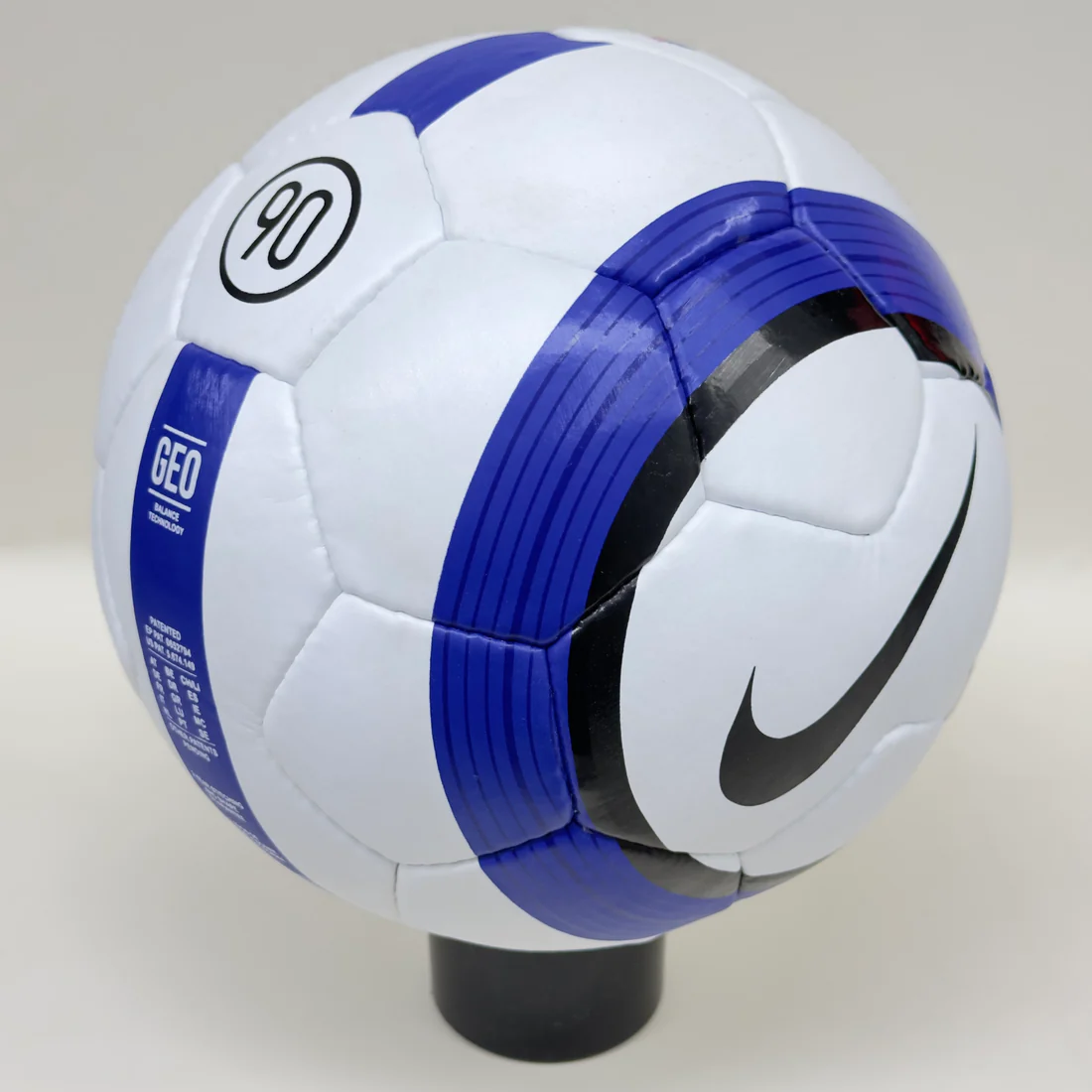 The Nike Total 90 Aerow 1 ball was used in the English Premier League from 2004 to 2006. It is the successor of the Nike Geo Merlin Vapor, which is the first ball to feature the Nike Geo technology. The Nike Total 90 Aerow 1 had a 26-panel design with a textured casing that improved the ball’s aerodynamics, accuracy, and touch. The ball is made of synthetic leather with a shiny waterproof coating. The ball is named after the Total 90, a line of soccer products by Nike that aimed to enhance the performance of strikers.