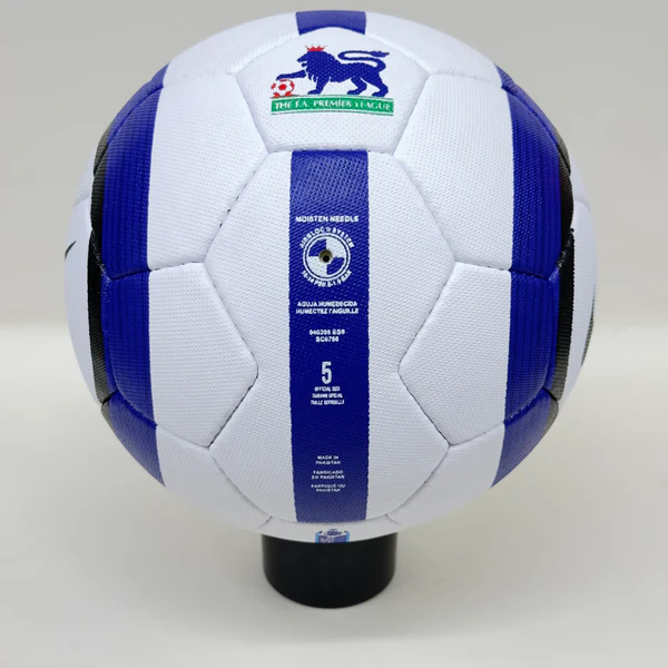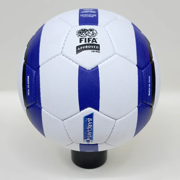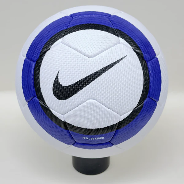 The Nike Total 90 Aerow 1 ball was used in the English Premier League from 2004 to 2006. It is the successor of the Nike Geo Merlin Vapor, which is the first ball to feature the Nike Geo technology. The Nike Total 90 Aerow 1 had a 26-panel design with a textured casing that improved the ball’s aerodynamics, accuracy, and touch. The ball is made of synthetic leather with a shiny waterproof coating. The ball is named after the Total 90, a line of soccer products by Nike that aimed to enhance the performance of strikers.