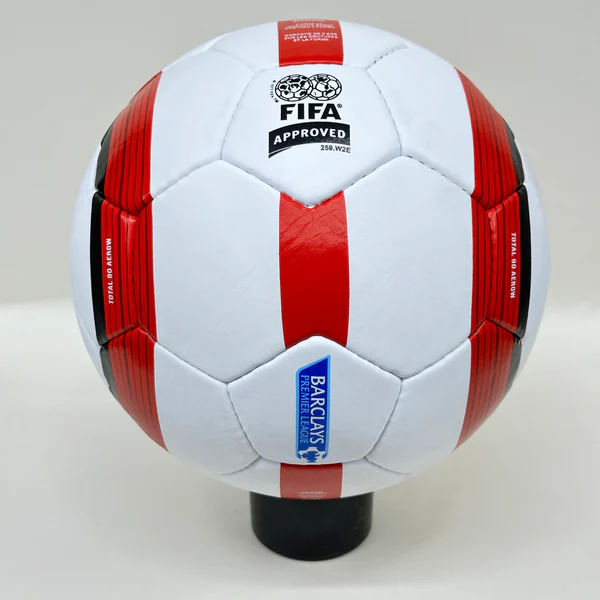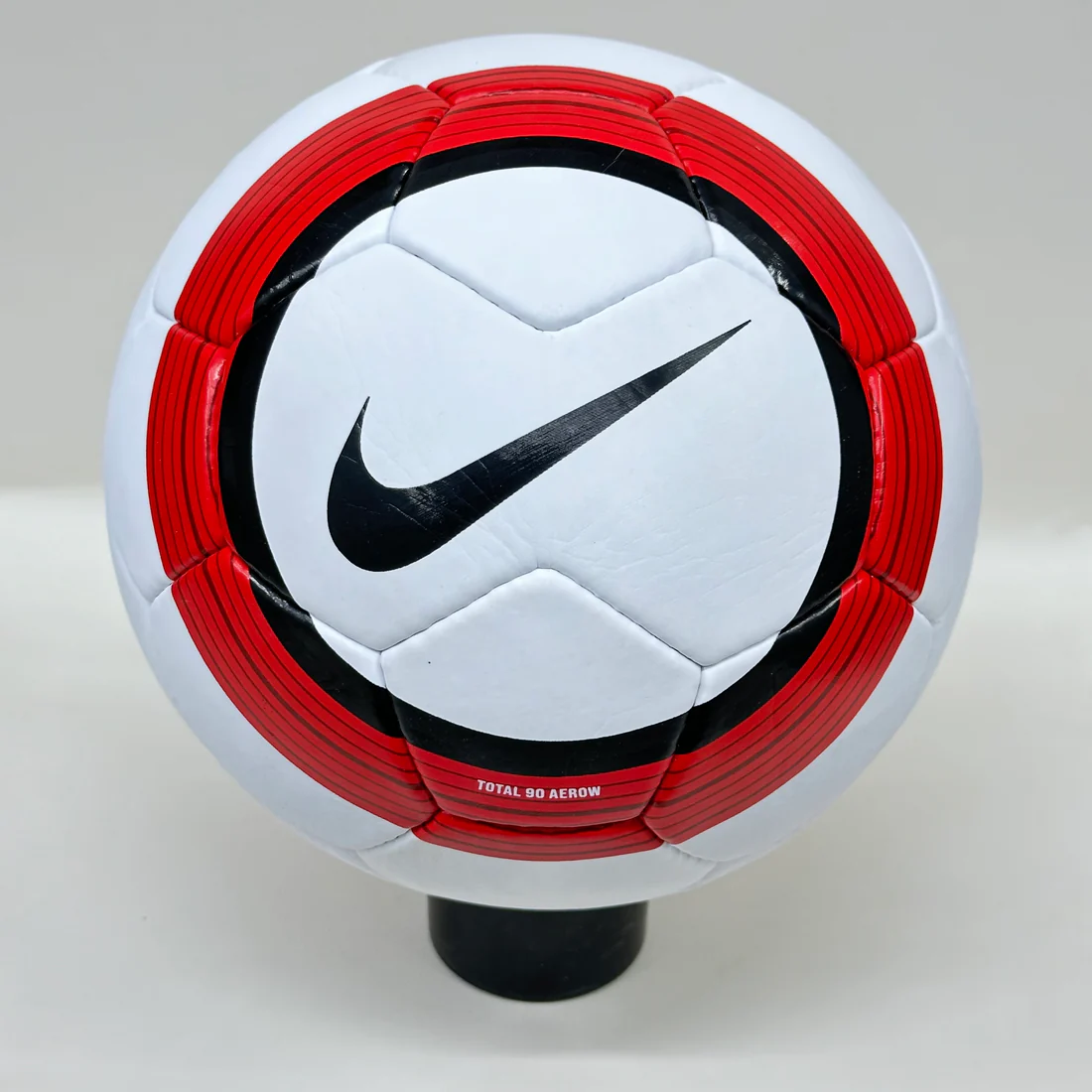The Nike Total 90 Aerow 1 ball was used in the English Premier League from 2004 to 2006. It is the successor of the Nike Geo Merlin Vapor, which is the first ball to feature the Nike Geo technology. The Nike Total 90 Aerow 1 had a 26-panel design with a textured casing that improved the ball’s aerodynamics, accuracy, and touch. The ball is made of synthetic leather with a shiny waterproof coating. The ball is named after the Total 90, a line of soccer products by Nike that aimed to enhance the performance of strikers.