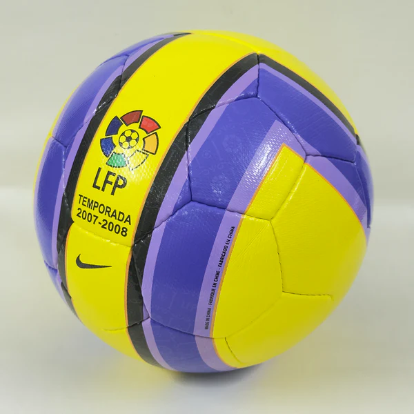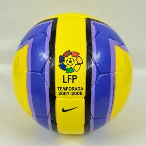 The Nike Total 90 Aerow 2 ball is used in the LFP from 2006 to 2008. It was the successor of the Nike Total 90 Aerow, which was the first ball to feature the Nike Geo technology. The Nike Total 90 Aerow 2 had a 26-panel design with a textured casing that improved the ball’s aerodynamics, accuracy, and touch. The ball was made of synthetic leather with a shiny waterproof coating. The ball was named after the Total 90, a line of soccer products by Nike that aimed to enhance the performance of strikers.