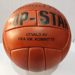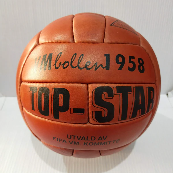 The Top Star was the official ball of the 1958 FIFA World Cup in Sweden. It was made by a Swedish company called Sydsvenska Läder-och Remfabriken and had 24 panels. It was available in three colors: brown, orange and white. The ball was selected by a committee of FIFA representatives after testing 102 balls from different manufacturers.